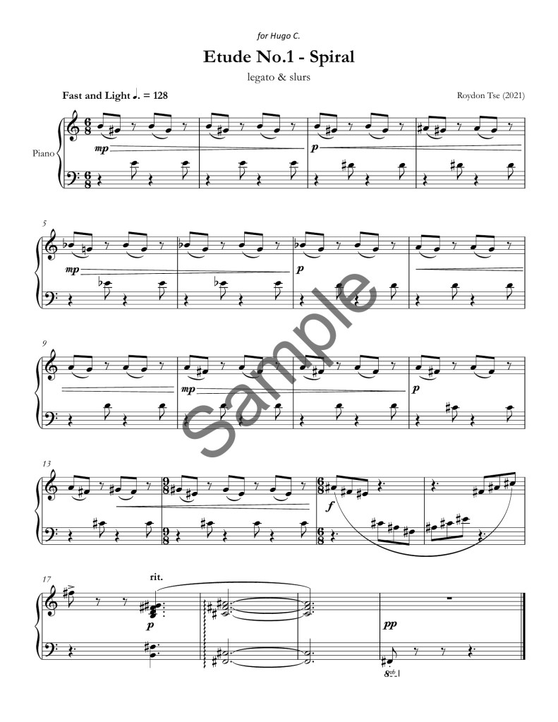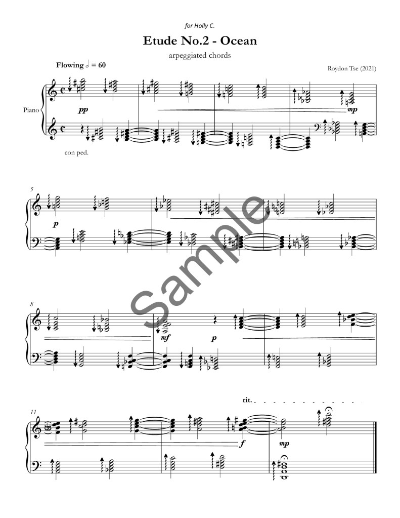 Etudes No.1 & 2 are the first two pieces in the beginning of a series of beginner-to-intermediate studies for piano. Etude No.1 – Spiral, explores the chromatically descending chords and test the performer’s ability to play legato and softly. Etude No.2 – Ocean, is a study on harmony and chords. The Etude introduces 7th chords to young pianists and test the ability to voice large chords.