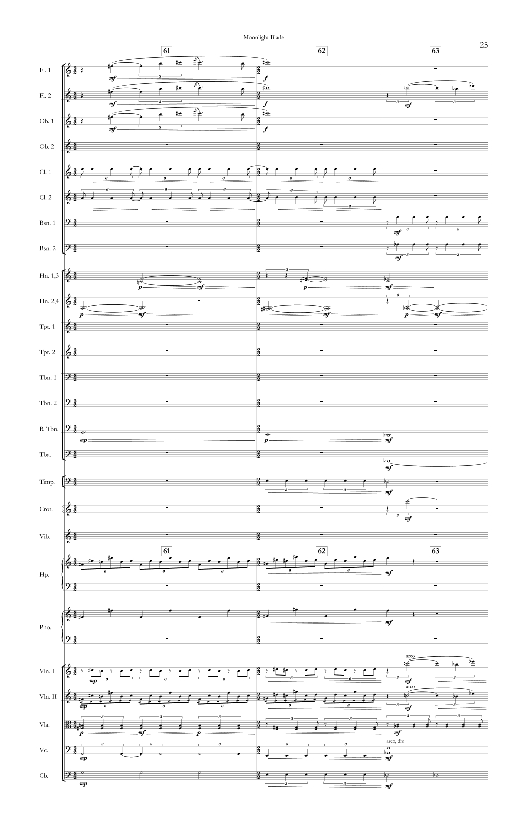 Written according to the specifications for the visuals of “Moonlight Blade” for the 2nd Shanghai International Digital Music Festival, this 5-minute orchestral work of the same name seeks to evoke the beauty and majesty of the mountains and lakes that are stunningly recreated in the video game. Divided into approximately three sections, the first section (0:00 – 1:33) captures the towering mountains of 张家界 with soaring string and brass motifs supported by percussion and woodwinds. The second section (1:33 – 2:50) is quieter in contrast and evokes the scenes of quiet villages and abandoned ruins that were part of the video presentation. The final section brings back the theme from the mountains in a finale and ends with a short flute solo that evokes scenes from the past.