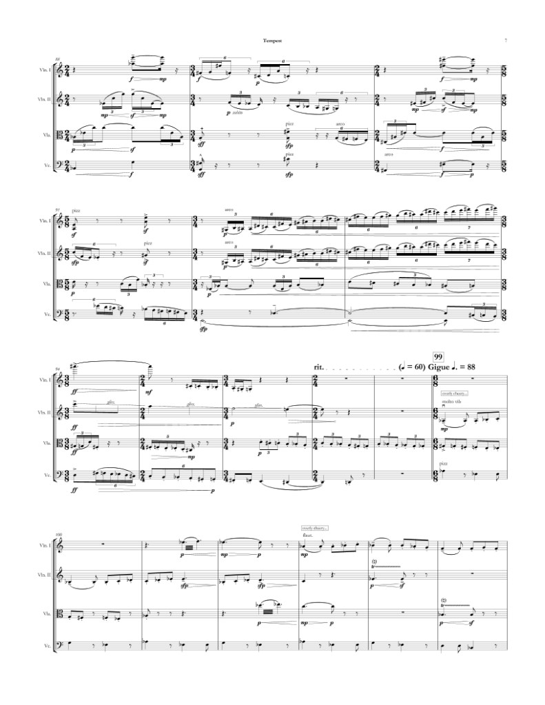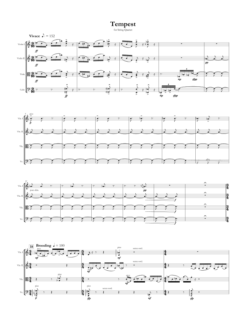 Written as a one movement rhapsody for string quartet, Tempest is a piece that comes from a personal place, and explores the coming to terms with inner conflict during a turbulent time in life.