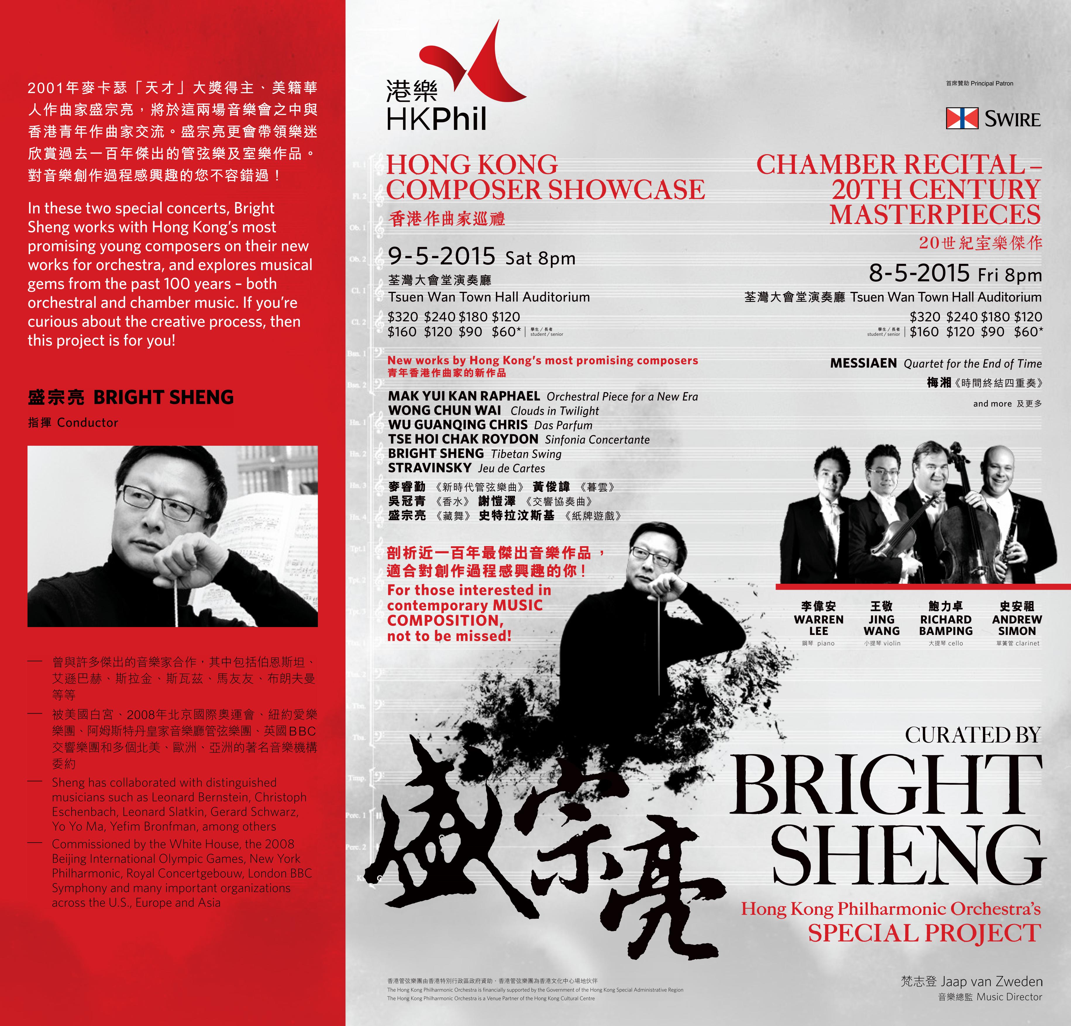 I am very excited to announce that the Hong Kong Philharmonic will be performing my composition, “Sinfonia Concertante” for percussion section and orchestra as part of their HK Composers’ showcase. The showcase includes a week of workshops and a culminating performance with the HK Phil, conducted by distinguished composer Bright Sheng. I very much look forward to working with this fantastic orchestra and prof. Bright Sheng, as well as returning to Hong Kong after almost five years away!