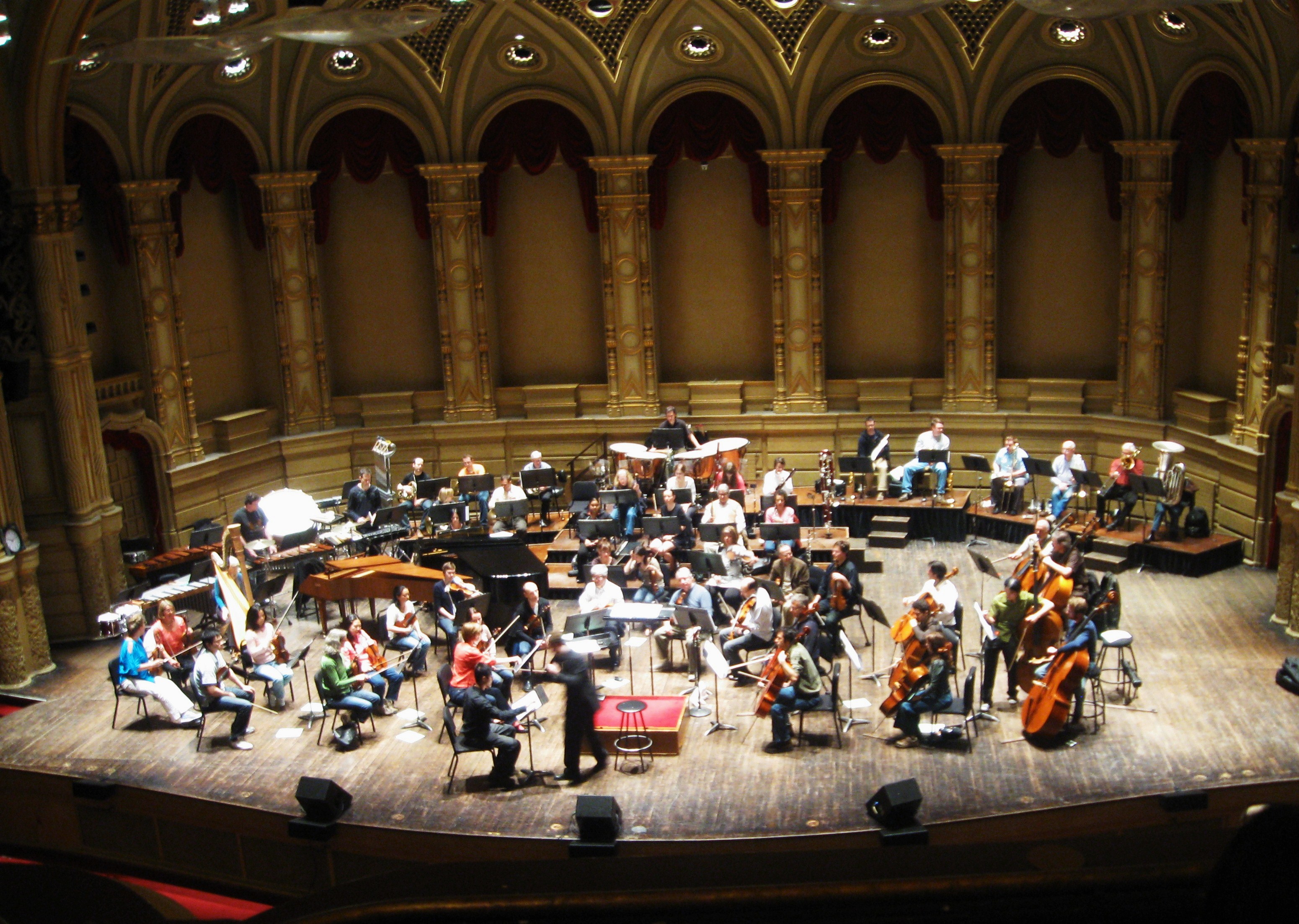 Roydon’s large orchestral work “Capriccio” featured at the 2009 Jean Coulthard Readings, seen here with conductor Evan Mitchel rehearsing with the VSO at the Orpheum Theatre, Vancouver